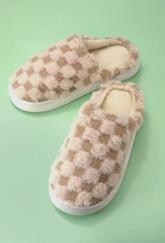 Checkered Plush Cozy Slippers