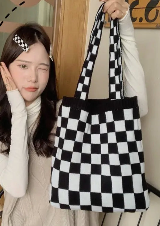 Checkered Knit Tote Bag