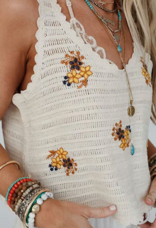 Woven Cotton Eyelet Square Neck Sleeveless Top