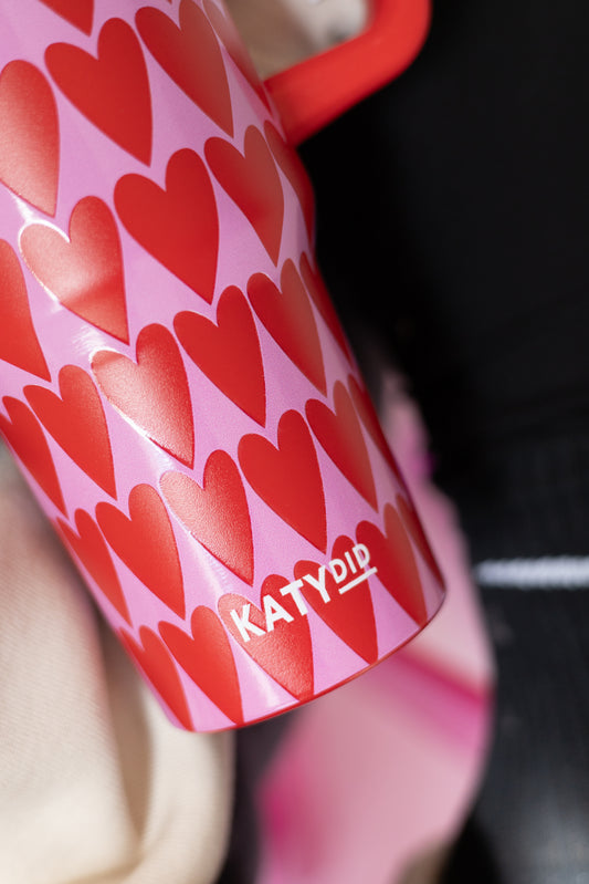 Red Hearts Stainless Steel 38 Oz Tumbler with Handle (Katydid)