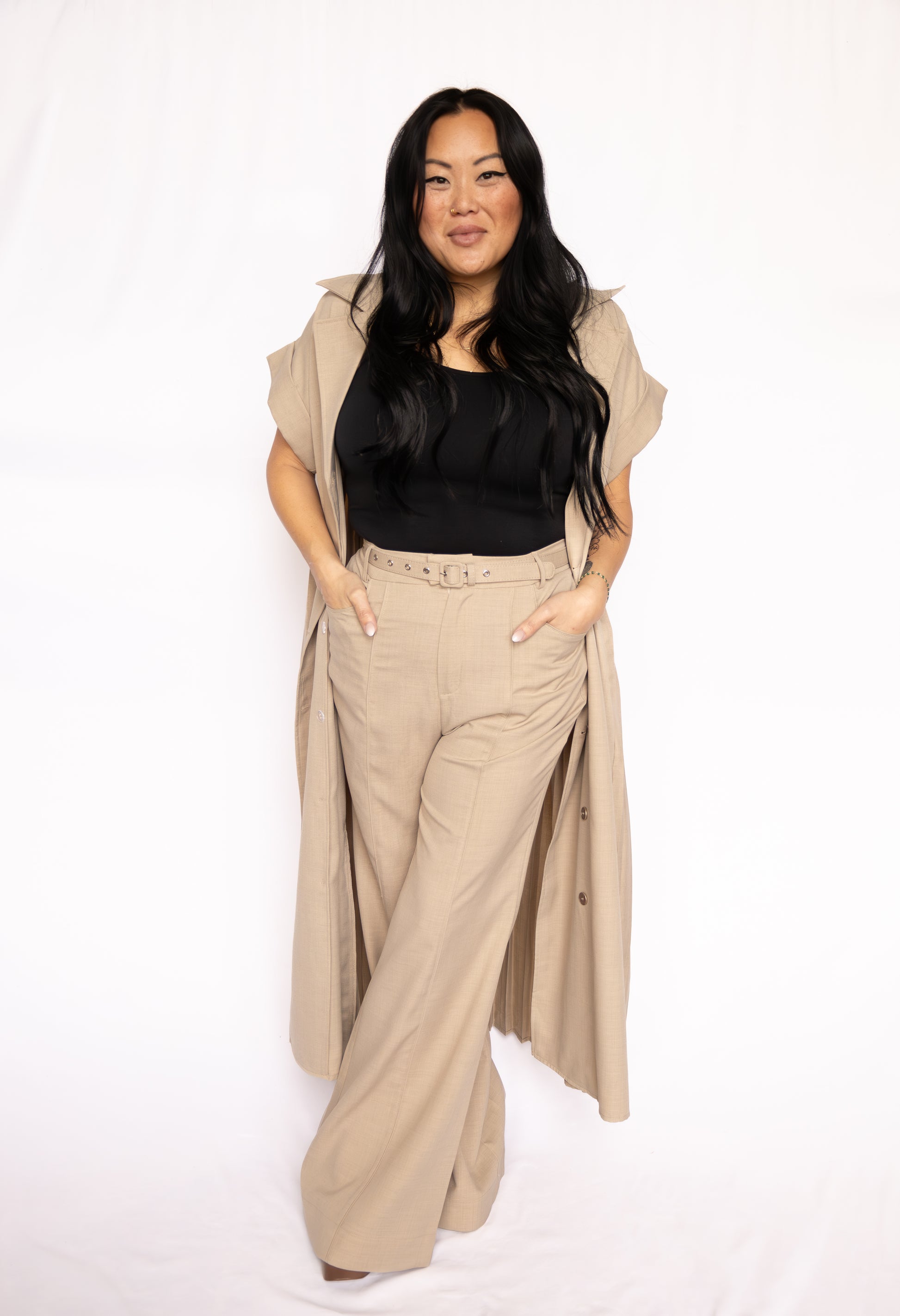 Transform your wardrobe with this versatile set! This cute three-piece ensemble can be trousers and a jacket, a long dress, or mix and match on their own! Perfect for dressing up or down from the office to a night out.