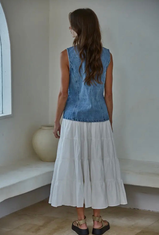 Denim Cotton Viscose Polyester Button Down Vest Top